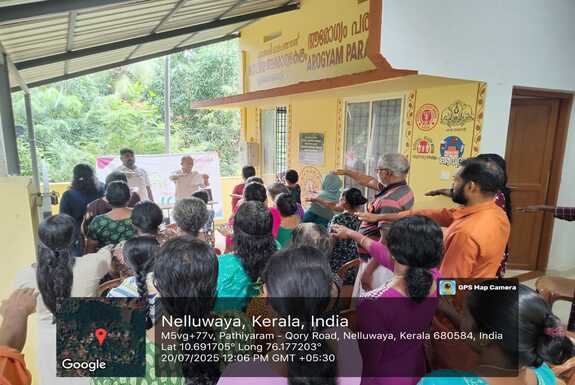 അമല ഗ്രാമ പദ്ധതിയുടെ ഭാഗമായി എരുമപ്പെട്ടി പഞ്ചായത്തിൽ വാർഡ് അഞ്ച് ജനകീയ ആരോഗ്യ കേന്ദ്രത്തിൽ വച്ച് 20/7/2025 ഞായർ രാവിലെ 10:00 മണി മുതൽ മഴക്കാല രോഗങ്ങളെ പറ്റിയുള്ള ബോധവൽക്കരണ ക്ലാസ്സും സൗജന്യ തൈറോയ്ഡ് ടെസ്റ്റും നടത്തി. അമല ഇൻസ്റ്റിറ്റിയൂട്ട് ഓഫ് മെഡിക്കൽ സയൻസസ് കമ്മ്യൂണിറ്റി മെഡിസിൻ വിഭാഗം എൻ്റോമോളജിസ്റ്റ് മുഹമ്മദ് റാഫി ക്ലാസ്സ് എടുത്തു. വാർഡ് അഞ്ച് മെമ്പർ ശ്രീ. അജയൻ സ്വാഗതം ചെയ്തു സംസാരിച്ചു.