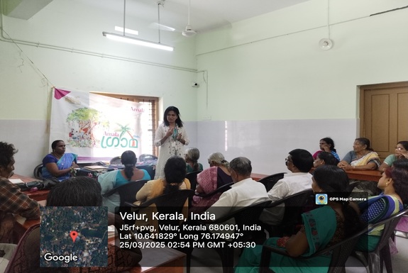 അമല ഗ്രാമ പദ്ധതിയുടെ ഭാഗമായി വേലൂർ ഗ്രാമപഞ്ചായത്തിൽ 25/3/2025 ചൊവ്വാഴ്ച്ച ഉച്ചയ്ക്ക് 2:30 ന് വേലൂർ ഗ്രാമപഞ്ചായത്തിലെ ബഡ്സ് റീഹാബിലിറ്റേഷൻ സെൻ്ററിൽ വച്ച് "Differently Abled" ആയ കുട്ടികളുടെ രക്ഷിതാക്കൾക്ക് വേണ്ടി "Mental Health And Physical Health Of Differently Abled Students" എന്ന വിഷയത്തെക്കുറിച്ച് ബോധവൽക്കരണ ക്ലാസ്സ് നടത്തി. അമല ഇൻസ്റ്റിറ്റ്യൂട്ട് ഓഫ് മെഡിക്കൽ സയൻസസ് Infection Control Coordinator Dr. Dinu Joy ക്ലാസ്സ് എടുത്തു. വേലൂർ പഞ്ചായത്ത് പ്രസിഡൻ്റ് ടി. ആർ ഷോബി ക്ലാസ്സ് ഉദ്ഘാടനം ചെയ്ത് സംസാരിച്ചു.